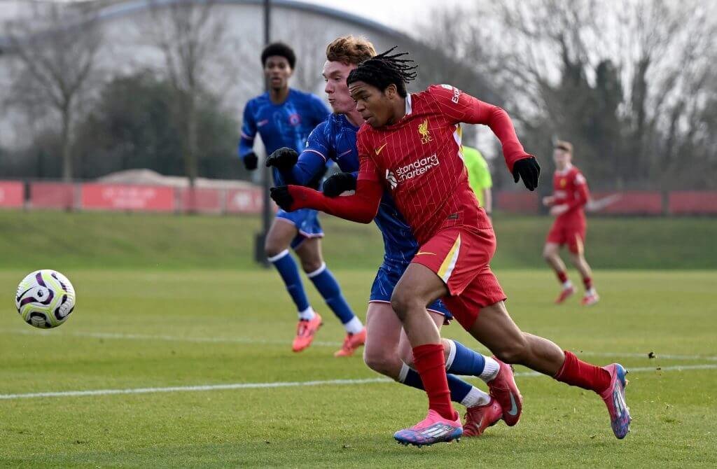 Нгумоа играет за «Ливерпуль» против «Челси» в матче академии в начале этого года (Ник Тейлор/ФК «Ливерпуль»/Liverpool FC через Getty Images)