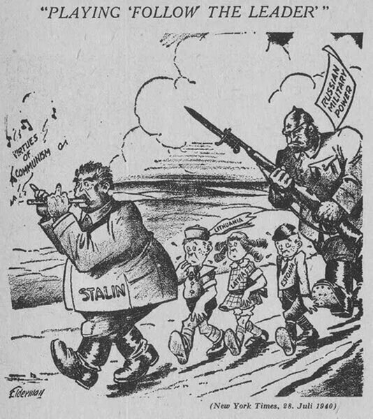 В межвоенный период мир столкнулся с появлением трёх влиятельных идеологий: советского коммунизма, немецкого нацизма и американского капитализма. Эти системы активно боролись за доминирование, используя традиционные методы пропаганды. Например, в США выпускали карикатуры на Сталина. В 1940 году, после присоединения Прибалтики, появилась карикатура. На ней страны региона были изображены в виде детей. За ними следовал солдат, а впереди шел Сталин с дудкой, под звуки которой они пели о коммунизме.[1] В 1939 году, после подписания договора Молотова-Риббентропа, появились сатирические изображения, высмеивающие это событие. Среди них – изображение Сталина с Гитлером, идущих по дороге в обнимку, но держащих пистолеты наготове за спиной[2] В США снова обращаются к карикатурам, чтобы пропагандировать свои идеологические взгляды и критиковать противников. В Германии не оставались в стороне, и в 1937 году один из журналов опубликовал карикатуры, изображающие, что в Советской России главным капита