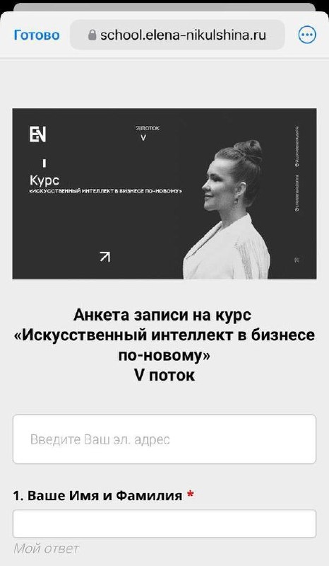 𝟭. Вы заполняете анкету: school.elena-nikulshina.ru/form/ai