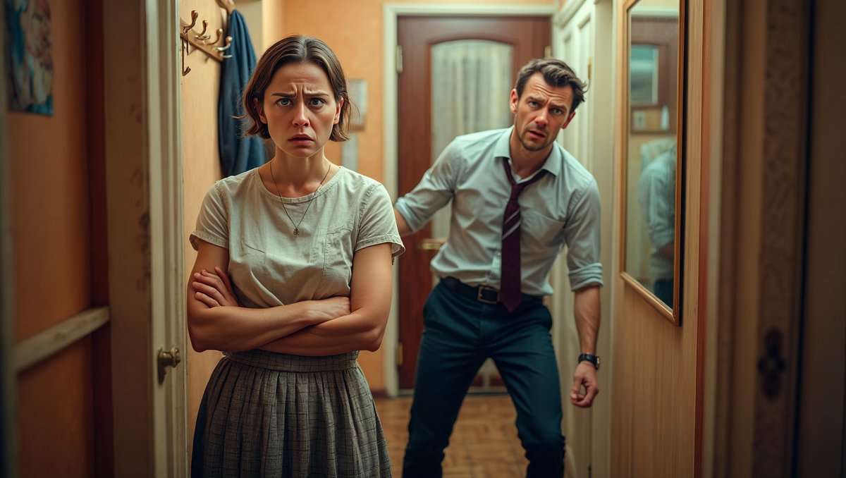 Ольга стояла напротив мужа, скрестив руки на груди. Её взгляд был холодным и недоверчивым. Она только что вернулась с работы и сразу почувствовала, что в доме что-то не так.