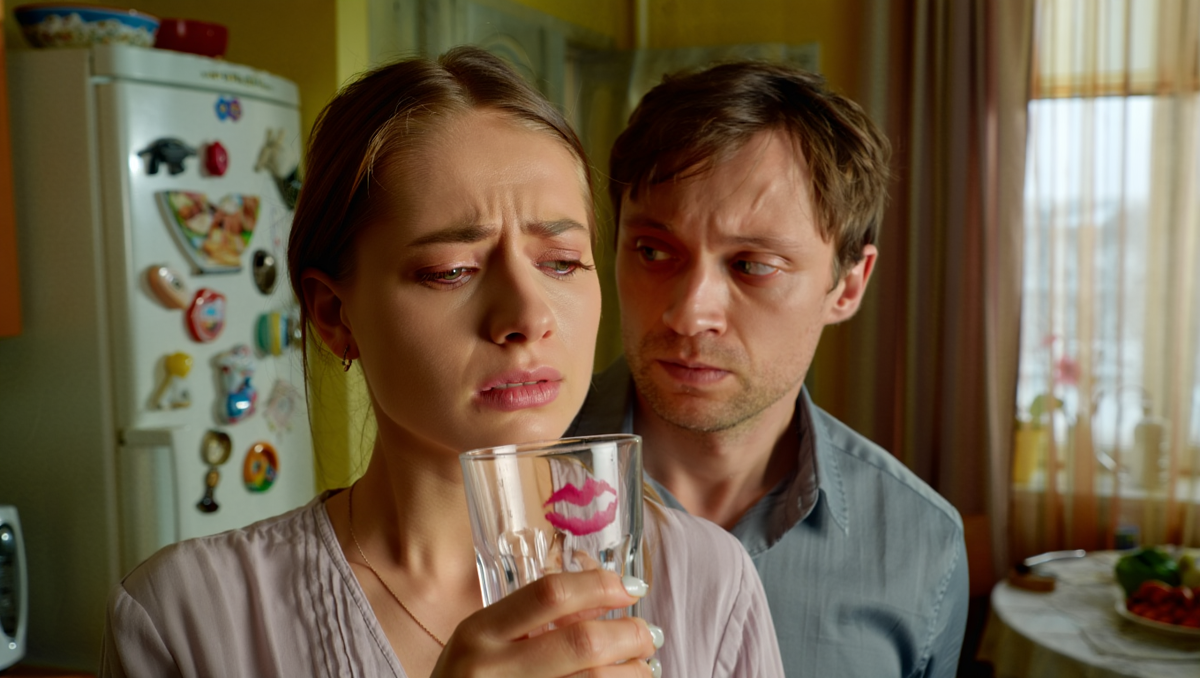 На столе стоял стакан, из которого Владимир пил чай. Елена взяла его, чтобы помыть, и вдруг замерла. На краю стакана был отпечаток губ. Но не просто отпечаток, а след от помады. Яркой, красной помады, которой Елена никогда не пользовалась.