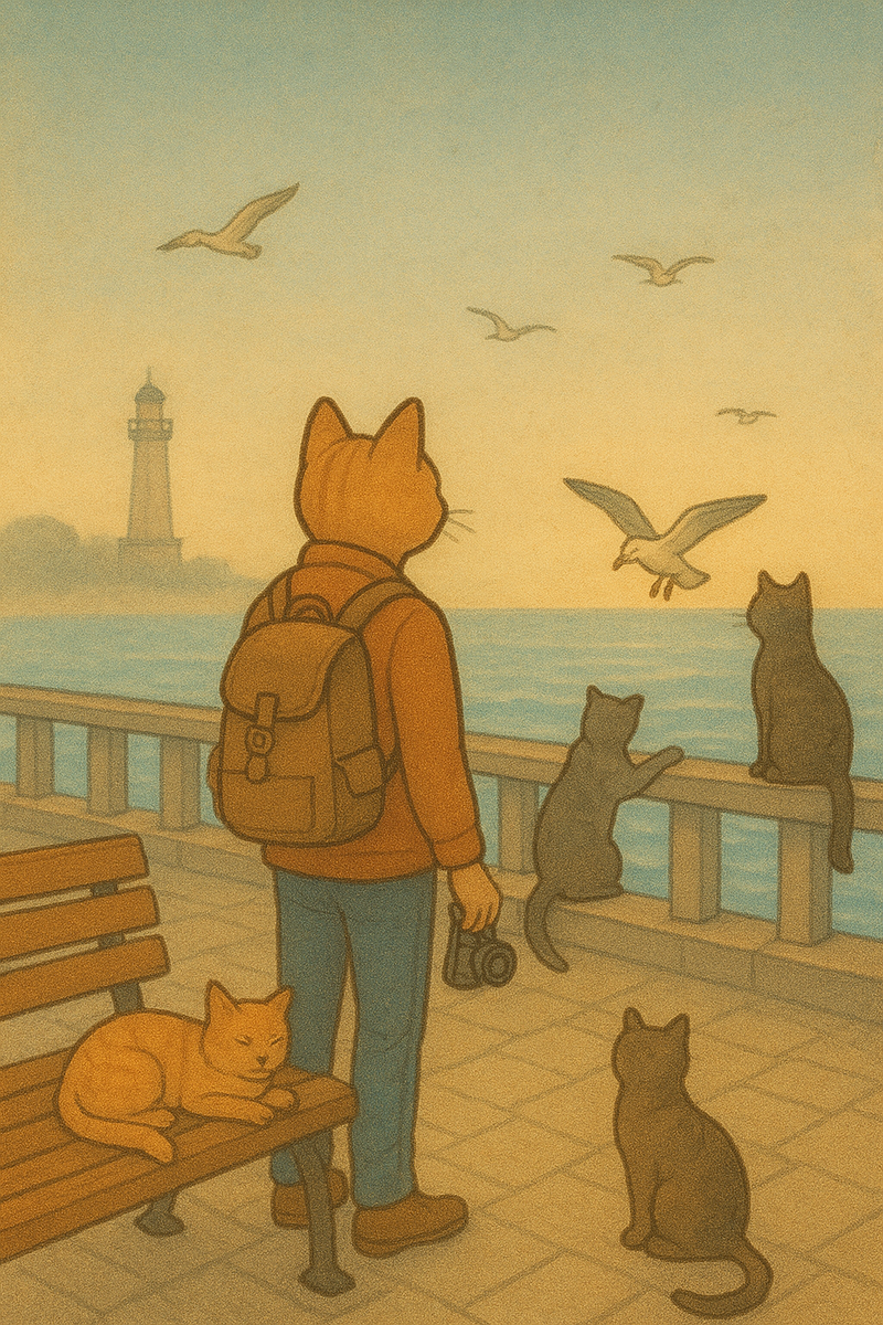 — Ладно, пропустим по первой раз, — фыркнул кот и ушёл к ближайшей лавочке. Я выдохнул и понял: Зеленоградск — это не курорт. Это Котоград, и я только что прошёл таможенный контроль. Променад под надзором Главная улица вдоль моря оказалась не прогулочной зоной, а настоящим парадом котов. Каждый занимал свой пост: Люди в этой системе играли роль почётных гостей. Мы могли гулять, фотографировать, покупать мороженое. Но всем было ясно: город