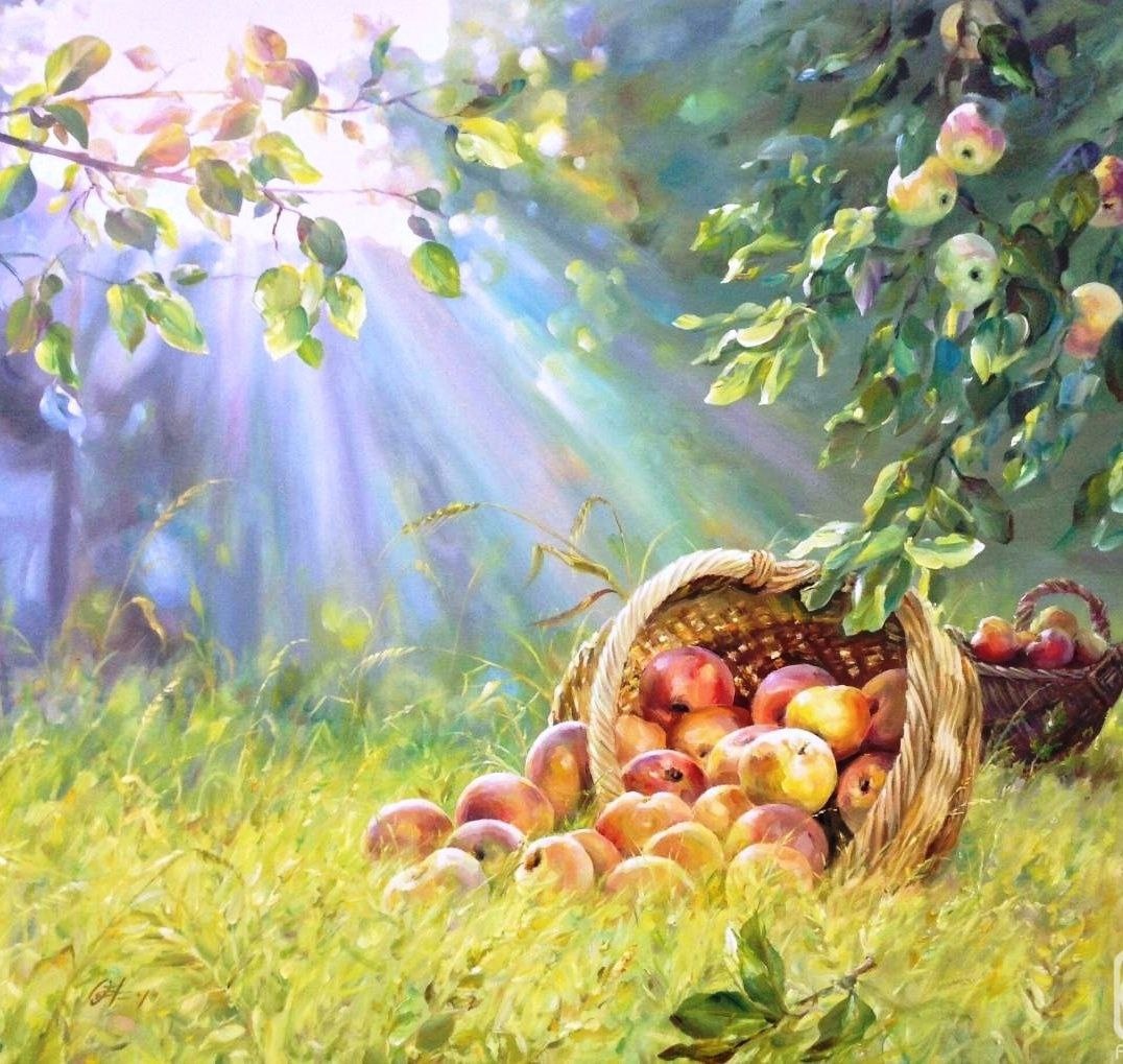📖ЯБЛОКИ. Дни лета наливались как яблоки. К Преображению Господню они были созревшими и как бы закруглёнными. От земли и солнца шёл прохладный яблочный дух. В канун Преображения отец принёс большой мешок яблок… Чтобы пахло праздником, разложили их по всем столам, подоконникам и полкам. Семь отборных малиновых боровинок положили под иконы на белый плат, – завтра понесём их святить в церковь. По деревенской заповеди грех есть яблоки до освящения. – Вся земля стоит на благословении Господнем, – объясняла мать, – в Вербную Субботу Милосердный Спас благословляет вербу, на Троицу – берёзку, на Илью Пророка – рожь, на Преображение – яблоки и всякий другой плод. Есть особенные, Богом установленные сроки, когда благословляются огурцы, морковь, черника, земляника, малина, голубица, морошка, брусника, грибы, мёд и всякий другой дар Божий… Грех срывать плод до времени! Дай ему, голубчику, войти в силу, напитаться росою, землёю и солнышком, дождаться милосердного благословения на потребу человека!