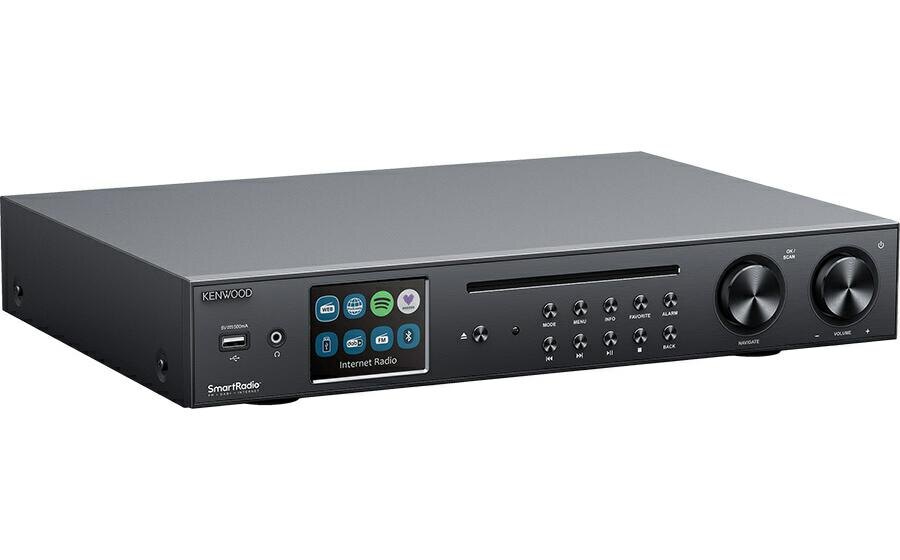 Ресивер Kenwood KR-W8000SCD предоставляет доступ к радиотрансляциям трёх типов: аналоговое FM, цифровое DAB+ и интернет-радио. Можно сохранить в памяти устройства до 80 станций. Также имеется прямой доступ к Spotify Connect и Deezer, и, конечно же, KR-W8000SCD поддерживает беспроводную трансляцию музыки по Bluetooth. Есть здесь и привод компакт-дисков, а также встроенный фонокорректор. Также ресивер способен воспроизводить аудиофайлы с подключенного USB-накопителя.