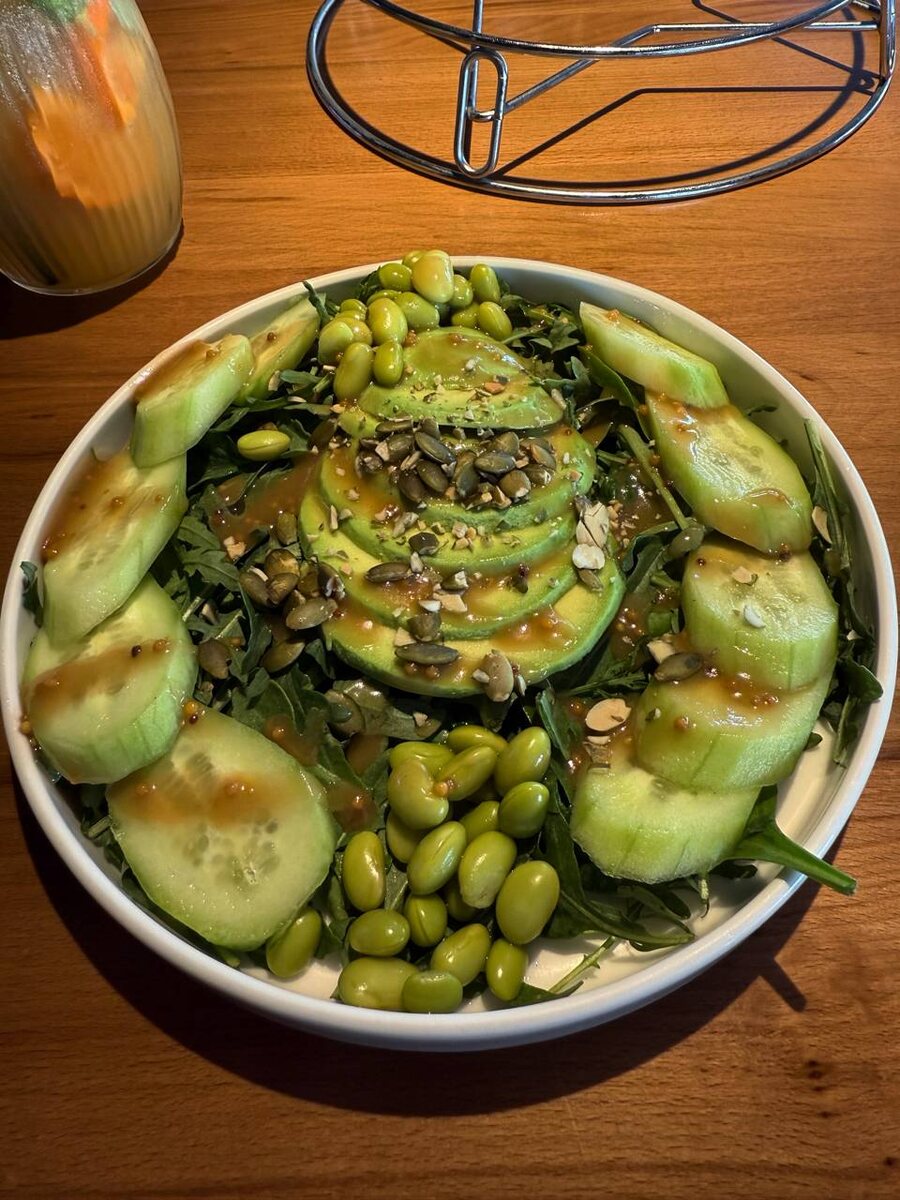 Пришла в My Joy (Набережная Космонавтов, 7а) посмотреть, насколько розовые их розовые пиццы, а нашла отличный зелёный салат