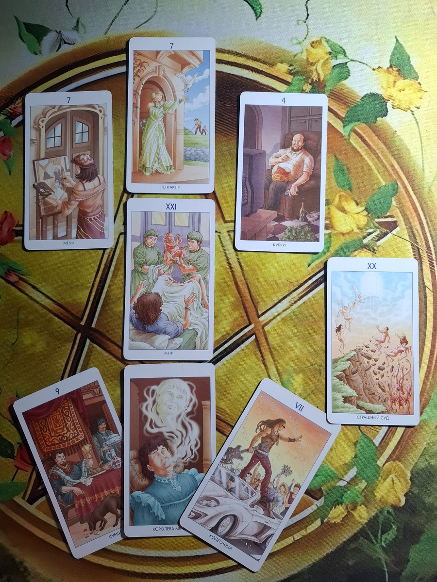 ✨ Дорогие мои, сегодня мы открываем вместе двери будущего и задаём важный вопрос: «Что изменится в вашей жизни в ближайшее время?» Расклад на колоде 78 Дверей показывает не просто события, а ключи к тем дверям, что готовы открыться для вас. Карты словно ведут вас по коридору судьбы: какие-то двери ещё закрыты, но мы слышим за ними шорохи и зов, какие-то уже распахнуты настежь, приглашая войти. Это послание для тех, кто готов взглянуть в глубину своей души и услышать шёпот Вселенной. 🌱 Семёрка Пентаклей Здесь проявляется ваша склонность к излишней требовательности к себе. Вы ставите высокую планку и, если результат не приходит мгновенно, начинаете нервничать и даже думать о том, чтобы всё бросить. Эта карта предупреждает: чрезмерное давление на себя может лишить радости пути. 👉 Пример: вы много работаете над проектом, но результат кажется недостаточно быстрым — появляется желание всё разрушить. Но именно в этот момент вы ближе всего к успеху. 🕵️ Семёрка Мечей Это карта устремлён
