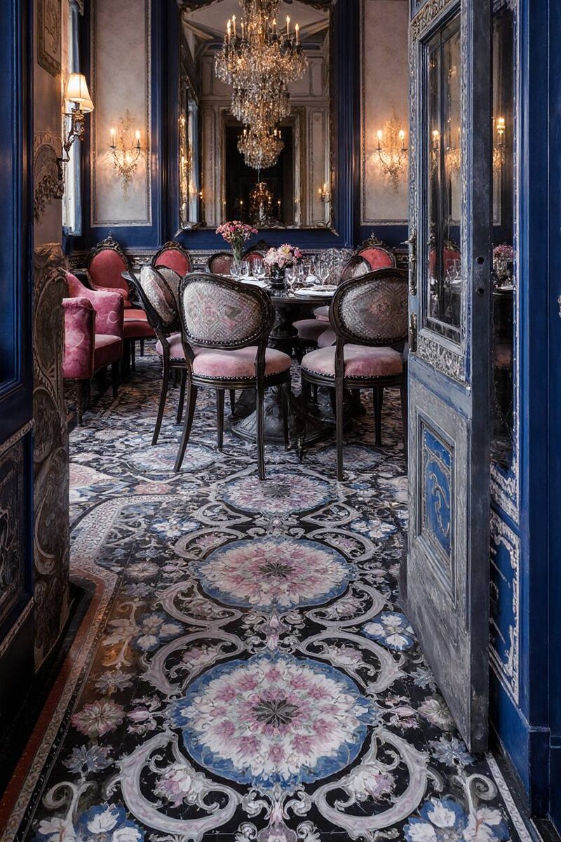 Серебристый фон и плавные линии мгновенно цепляют взгляд. Вологодская роспись — направление, сформированное в Вологде в конце XX века на основе местных промыслов XVII века: чернения по серебру, уфтюгской росписи и сольвычегодских эмалей. Выше уже я рассказывала о других росписях, ссылки на которые вы можете найти в посте про Городецкую роспись. На изделия наносят нежный серебристый тон, а узоры выполняют голубыми, чёрными, белыми и розовыми красками. В интерьере приём уместен на стенах, мебели и текстиле. Если вы хотите увидеть настоящие образцы вологодской росписи, советую посетить Вологодский государственный музей‑заповедник в Вологде. Фотографии этого интерьера сгенерирована искусственным интеллектом — krea.ai Как Вы считаете, стоит ли вводить эту технику в современный интерьер? #русскийкод