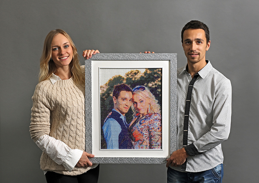 Клиент прислал фотографию или снимок с телефона. Вы выбираете размер, тип страз, задаёте число цветов, проверяете вид — и на вых