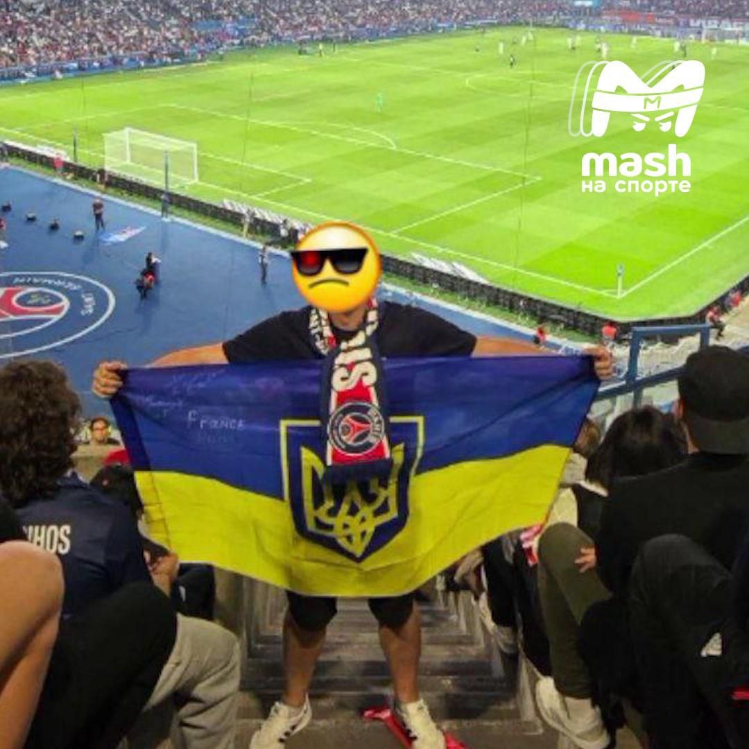 Украинского фаната выгнали со стадиона во время матча «ПСЖ» - «Анже» Мужчина развернул флаг Украины, сфоткался, а потом получил втык от стюардов. Те сказали, что в правилах прописан пункт о том, что на арене запрещено разворачивать баннеры/флаги для "демонстрации политического послания". Тот ничего не понял, устроил дебош и был выдворен с трибуны🤷