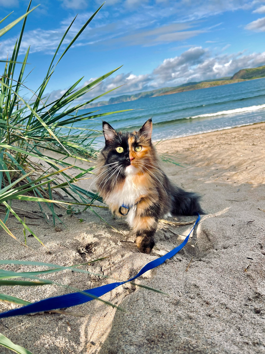 На следующий день мы с нашей кошкой Луной отправились в п.Териберка. Погода в Мурманске стала еще хуже, к дождю добавился туман, но так как у нас планы поменялись, то решили этот день провести на лайте. Сразу скажем мы проспали, проснулись в 9:30, мигом сгоняли за кофе в Мак около дома, кстати раньше это был самый северный Макдональдс России. Неспешно собрались и за это нас немного наказала судьба, по дороге в Териберку нам путь преградил военный, который сказал, что шоссе закрыто на час из-за упавшего крана. Мы решили, что спешить нам некуда и возглавили отряд ждущих машин, попутно нескольким людям показали нашу кошку Луну. Луна как всегда произвела фурор. Минут через 50 дорогу открыли и мы поехали в п.Териберка и с каждым километром погода становилась все лучше и лучше. Въехав на Териберку, сразу решили, что посетим только часть поселка с песочным пляжем. Териберка нас встретила ярким солнцем, голубым небом и полным штилем. Выйдя на пляж Луна тут же начала привлекать вниман