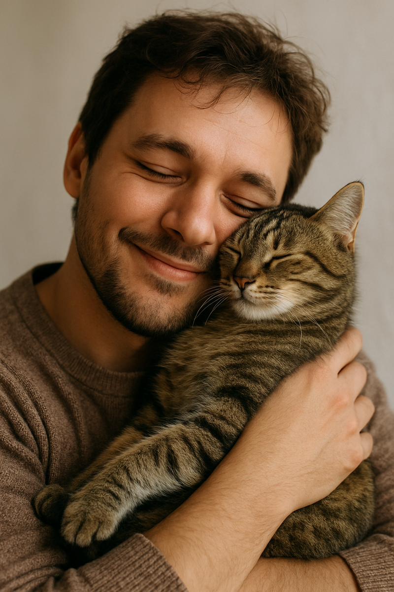 - Выработка гормонов счастья: Процесс поглаживания кошки и слушание ее мурлыканье стимулирует у человека выброс эндорфинов (натуральные обезболивающие), окситоцина (гормон любви и привязанности) и серотонина. Уровень кортизола (гормон стресса) при этом падает. Формируется петля позитивной обратной связи: хорошо и кошке, и человеку.
