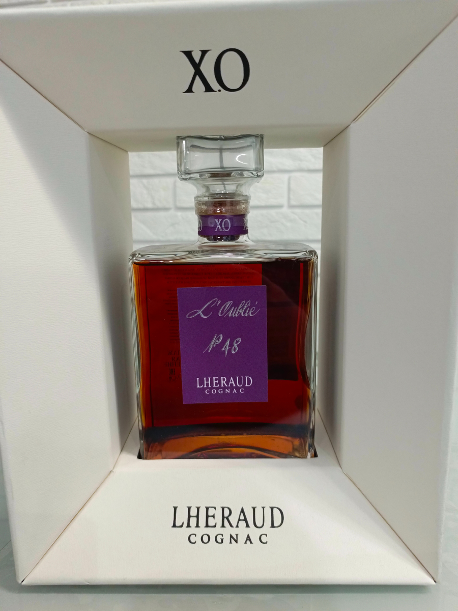 Продолжаем знакомиться с французскими коньяками. Очередной обзор от моего друга Александра Соболева (текст автора). Герой сегодняшнего обзора - Cognac Lheraud L'Oublie №48 XO. Ни в коем случае мои отзывы не претендуют на безапелляционную объективность. Это только мое личное мнение о конкретном напитке, а оценка выражает только мое отношение к нему. Всем привет! Подошло время наконец-то близко ознакомиться с Леро 48. Вообще-то на Продэкспо я его прилично хлебнул из их известной «бутылочки», и остался в очень приятных впечатлениях, но на халяву, как известно... Одно дело хлебать, да меж другими коньяками, другое - разбирать подробно в домашней обстановке. И Саша предоставил мне эту возможность. Lheraud "Oublie" XO — коньяк от коньячного дома Lheraud. Производится из отборных спиртов 10-летней выдержки традиционным методом с максимальным сохранением ароматических и вкусовых качеств выдержанного коньяка. Оригинальный дизайн бутылки задуман и исполнен мадам Леро. Также она придумала и назва