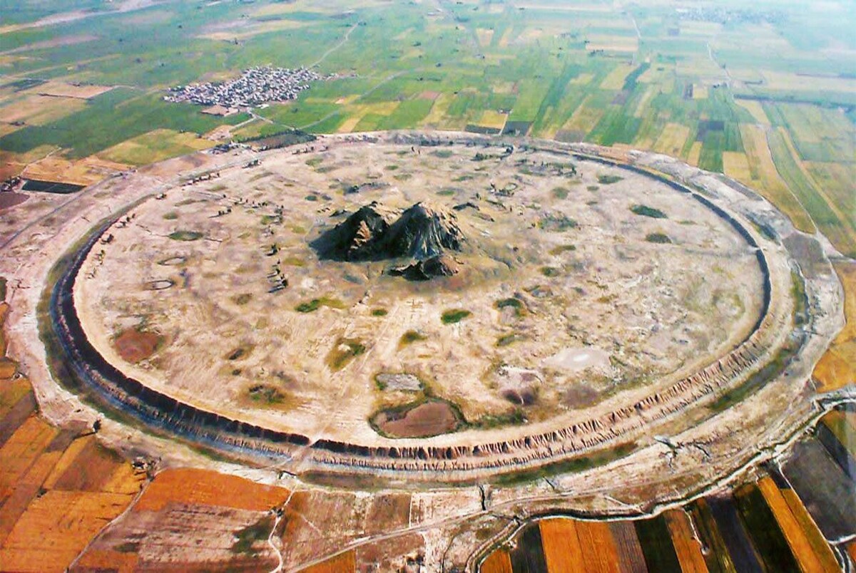 Руины идеально круглого города хорошо просматриваются с воздуха в иранской провинции Парс. Города круглой формы не такая редкость для иранского и вообще ближневосточного пейзажа. Парфяне, например, которые держали власть в регионе почти пятьсот лет, часто проектировали круглые полисы. Это было их градостроительной особенностью. Но древний Дарагберд, так назывался когда-то этот город, уж слишком идеально кругл. Такое ощущение, что кто-то поставил на местность огромный циркуль и прочертил совершенную окружность. Существуют различные мнения по поводу истории основания Дарабгерда. Поселение на этом месте было еще в VI веке до н.э. Но планировка города в ту эпоху имела треугольную форму. Считается, что основателем его был ахменидский царь Дарий Великий. Однако, некоторые другие средневековые источники предполагают, что строителем города мог быть некий Дара, один из наместников парфянских правителей Аршакидов.От того или от другого правителя город получил свое название? В ответе н