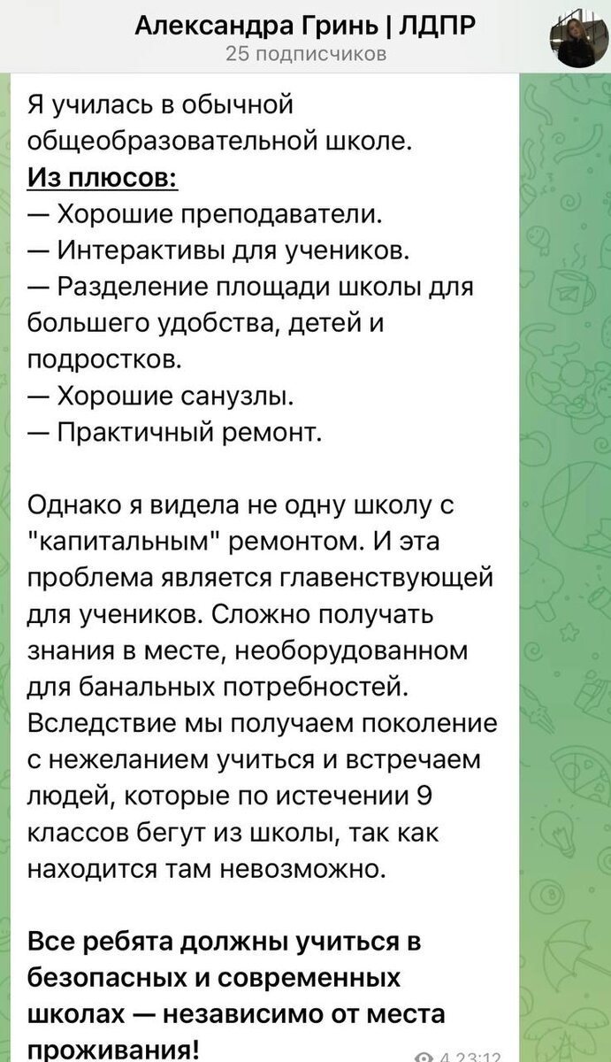 ❕ЛДПР ПРОТИВ НЕРАВЕНСТВА В ШКОЛЬНОМ ОБРАЗОВАНИИ! ЛДПР против того, чтобы будущее наших детей зависело от почтового индекса! Наш отважный активист из Подмосковья, Александра (да-да, запомните это имя!), взяла и составила простой «чек-лист школы». Александра рассказала как базовые пункты реализованы в школах, и поделилась мнением в своём канале. Каждый ребёнок имеет право на комфортную и безопасную школу. ЛДПР за то, чтобы школа была равной для всех, а не привилегией для избранных! Мы говорим «нет» школьному неравенству!