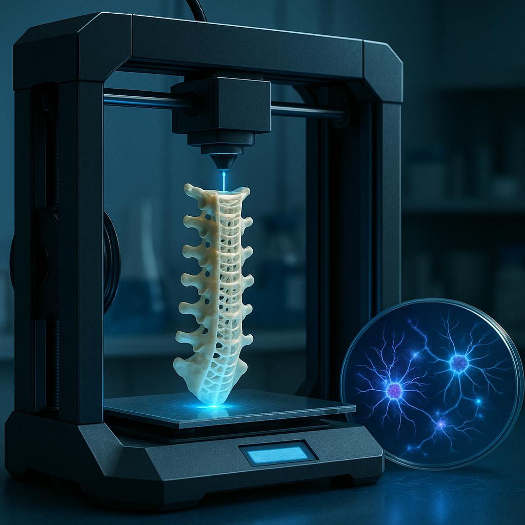 Травма спинного мозга – одно из самых тяжёлых повреждений, часто приводящее к пожизненной инвалидности. Пока медицина не знает универсального способа восстановить разорванные нервные пути. Однако исследователи из США предложили революционное решение: 3D‑печатный каркас, заселённый стволовыми клетками, который направляет регенерацию тканей. Они сообщили о впечатляющих результатах на модели крыс, полностью потерявших возможность ходить. Учёные использовали биопринтер для создания пористой структуры – «оргаскелета», напоминающего спинной мозг. Материал каркаса – биосовместимый полимер, растворяющийся со временем. Внутри структуры проходят микроканалы диаметром в десятки микрометров, которые задают путь для вновь растущих нервных аксонов. Затем каркас заселяют клетками – предшественниками нейронов, полученными из стволовых клеток. После имплантации каркас замещает повреждённый участок и служит направляющей для восстановления. В эксперименте крысам полностью перерезали спинной мозг. У живот