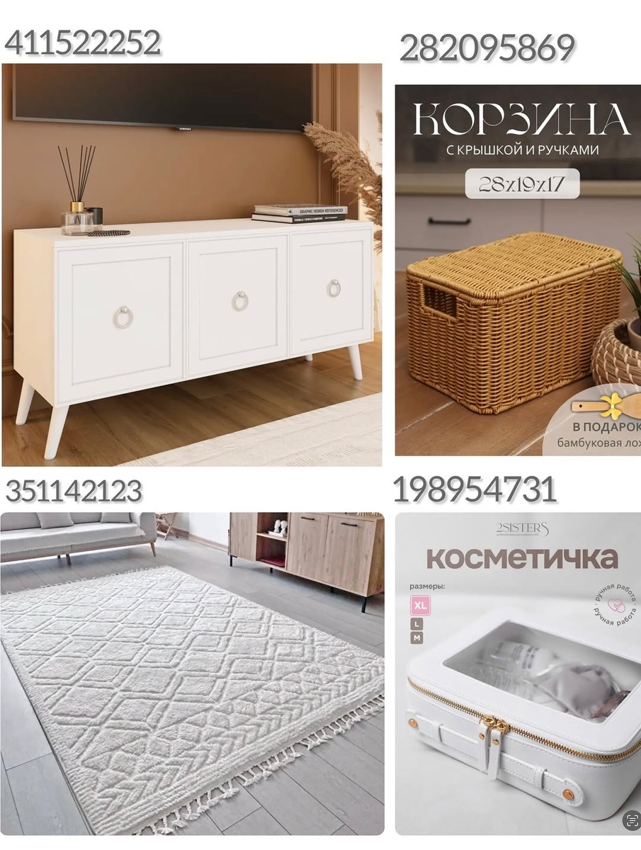 - Про сон и порядок: бельё (223825015) + косметичка (198954731) — и спальня работает, как мини-отель.