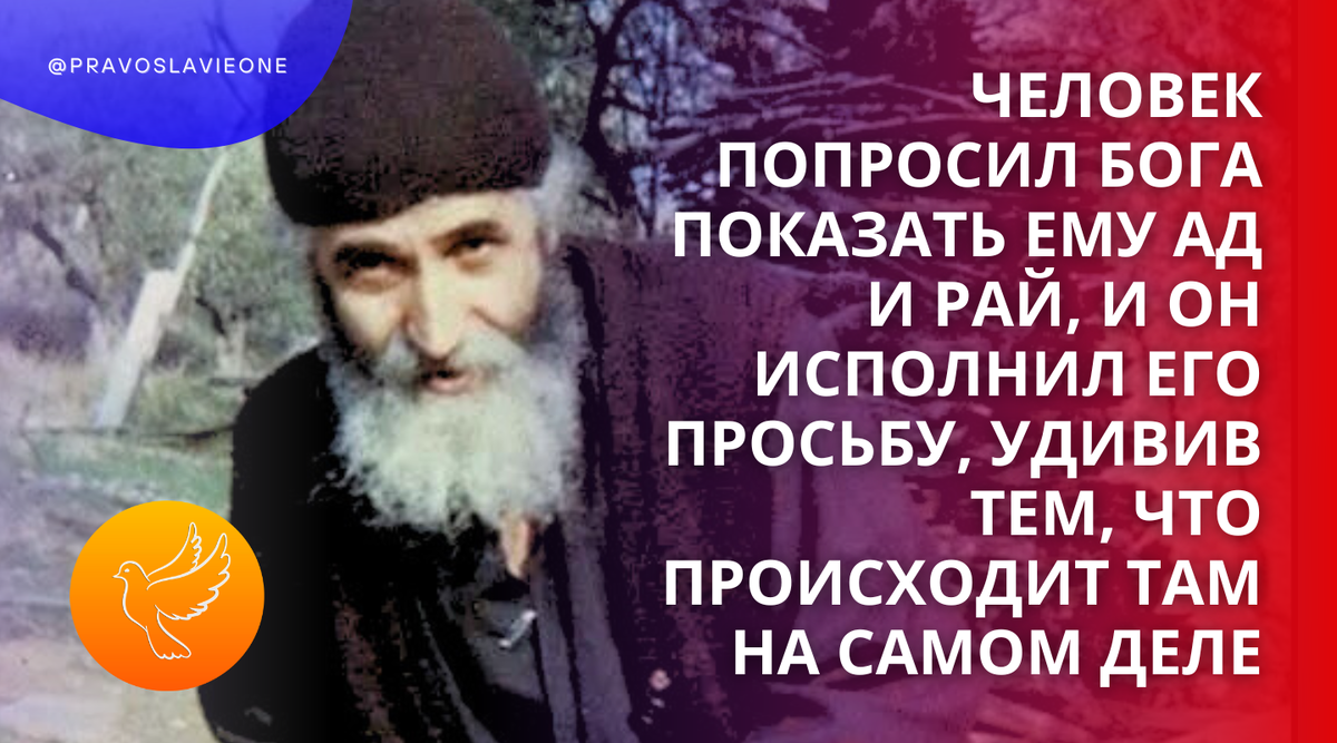 В наставлениях преподобного Паисия Святогорца, содержится одно весьма поучительное повествование. Оно рассказывает о человеке, который обратился с усердной молитвой к Всевышнему, прося явить ему подлинную сущность рая и преисподней.