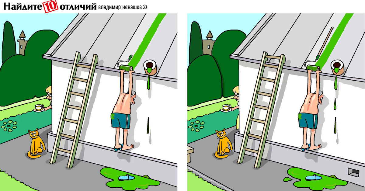 10 отличий и тест на внимание про ремонт и покраску крыши. Позитивная загадка для всех.