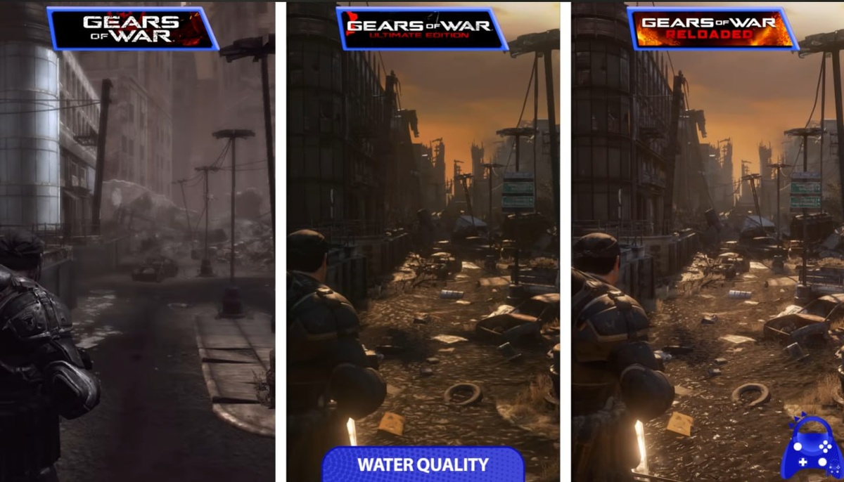 Сравнение Gears of War (2006), Gears of War: Ultimate Edition (2015) и Gears of War: Reloaded (2025). Видео на YouTube. • Игра всё ещё работает на Unreal Engine 3, хоть и с массой кастомных настроек, благодаря которым появились SSR-отражения, нормальное сглаживание и апскейлы, • Ещё разработчики сильно доделали освещение.