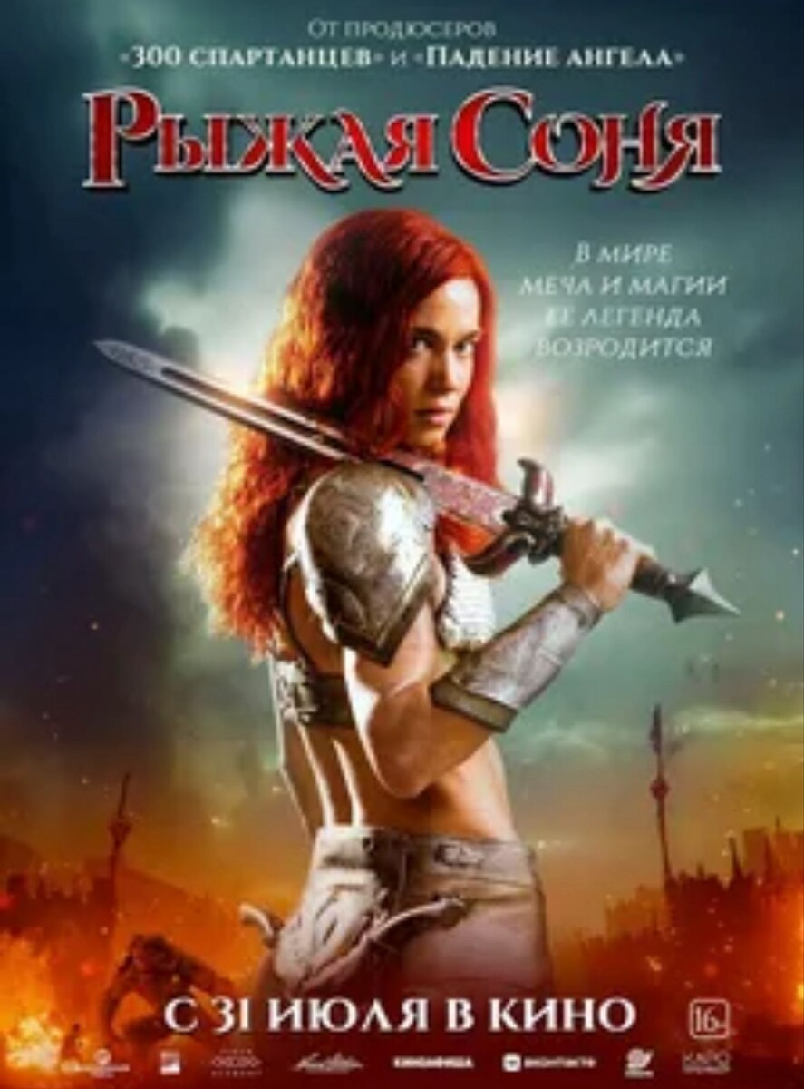 То, что дал оружейник Соне, разумеется не имеет ничего общего с одеждой тех времён, но на экране смотрится неплохо, примерно так, по-моему, начинаются фильмы Brazers. То есть шортики на постере — это ещё фигня. Директору по костюмам была поставлена задача объединить в одном наряде купальник-бикини, кольчугу и костюм для танца живота. Справились блестяще.