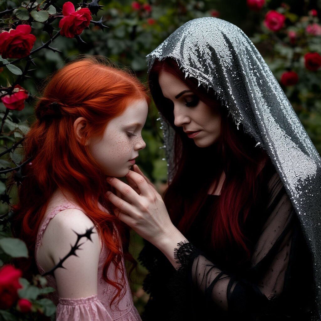 Глава 10 Дэя зажмурилась — мир вокруг плыл, как в лихорадке. Голова раскалывалась, в висках стучало: — Вспомни. Это был не голос Даррэна. Не шёпот Матери Тьмы. Это звучало изнутри. Обрывки правды. Перед глазами поплыли образы: Детство, которого не было. Маленькая девочка с вишнёвыми волосами играет в саду, где вместо цветов — чёрные шипы. Женщина в серебряной вуали гладит её по голове, и от прикосновения остаются ожоги. Она бежит по тёмному коридору, за ней — тени с кинжалами. Падает. Чья-то рука сжимает её горло. Последнее, что она видит — лицо Марка Риате. Но не ненавистное. Скорбное. Он стоит над её бездыханным телом, его пальцы в её волосах. Говорит что-то... и плачет. Дэя вздрогнула. — Ты... плакал? Даррэн не отвечал. Его глаза были пустыми, но в них горело что-то тяжёлое. Женщина в вуали засмеялась — звук, как треск ломающихся костей. — Ты боишься меня, дочь? Хорошо. Страх — это единственное, что делает существ вроде тебя послушными. Она сделал