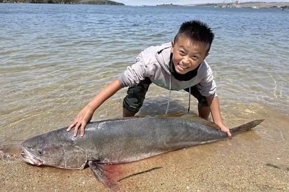 13-летний школьник поймал рыбу размером с себя