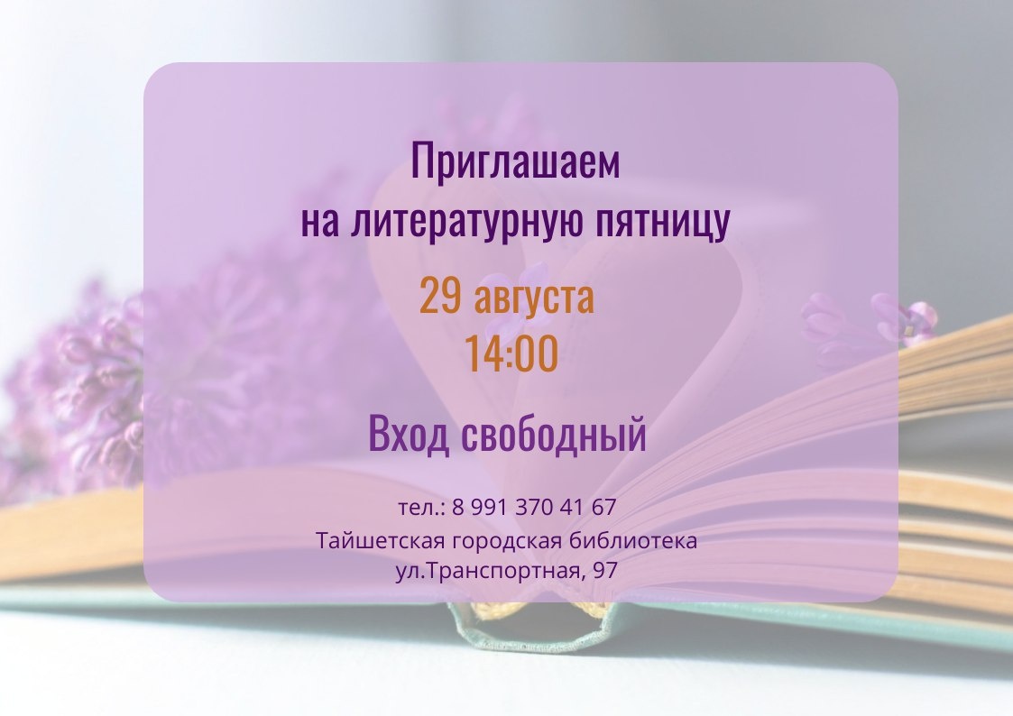 Приглашаем на литературную пятницу #МодельнаяБиблиотекаТайшет #БиблиотекаТайшет
