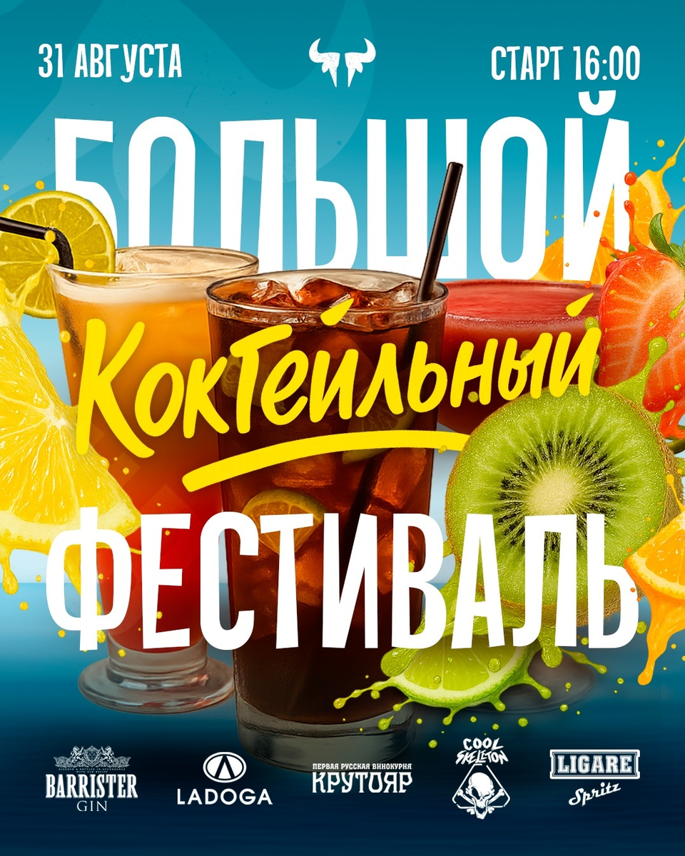 Вас ждут 12 лучших баров и ресторанов Челябинска, каждый из которых предложит 4 эксклюзивных авторских коктейля, приготовленных специально для фестиваля: на джине Barrister, роме Cool Skeleton, первом на 100% российском виски «Крутояр» и на аперитиве Ligare Sprits! Вход свободный. Стартуем в 17:00 - и до последнего гостя.