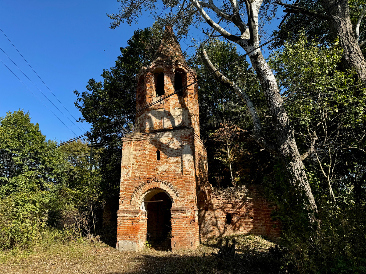Сегодня от храма уцелела изящная шатровая колокольня и фрагменты стен. И — главное — сохранившиеся фрески на «голой» стене, которая давно смотрит в небо. Контраст потрясает: живопись XVIII–XIX веков держится там, где давно нет ни крыши, ни стекол, а в бывшей трапезной уже «растёт лес».