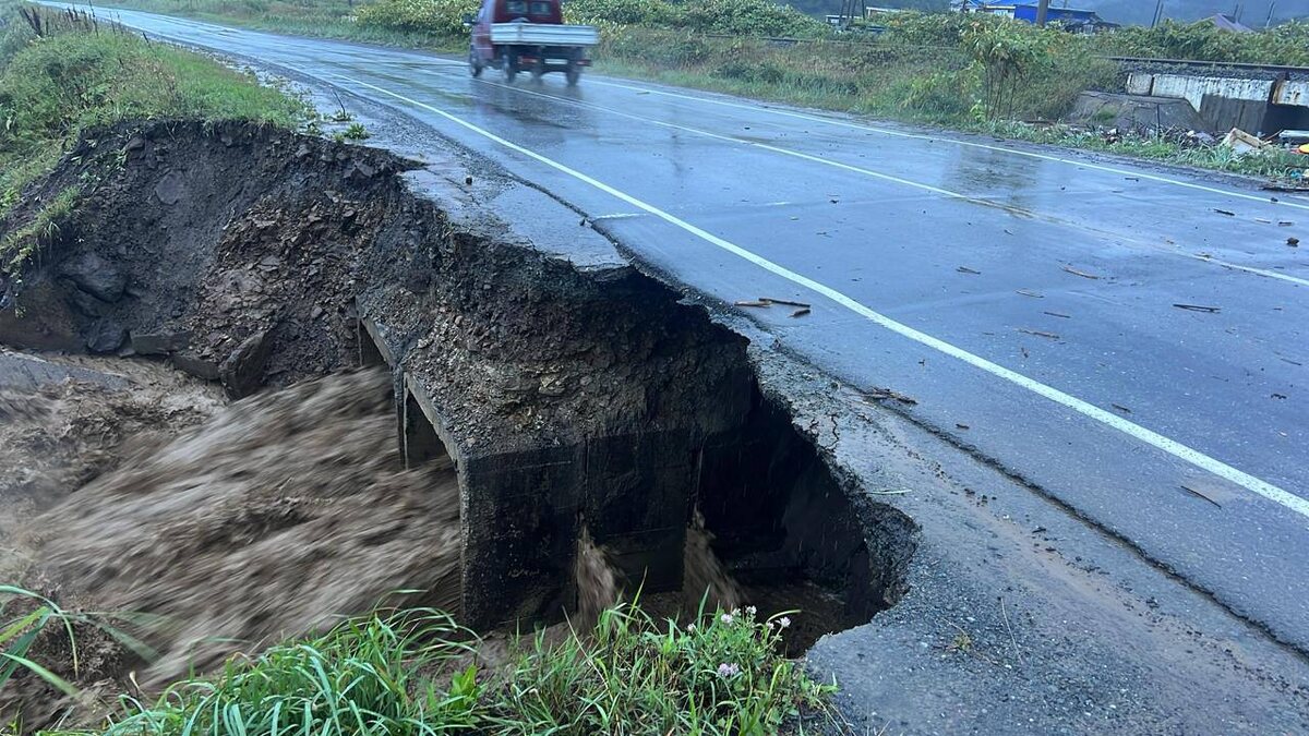 Дорогу в Невельском районе в одном месте размыло, в другом засыпало 😳