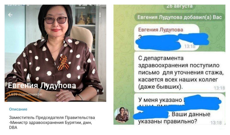 В Бурятии зафиксирован новый случай кибермошенничества: злоумышленники создали поддельный аккаунт министра здравоохранения Евгении Лудуповой в Telegram. Они рассылают сообщения медикам и ветеранам здравоохранения, запрашивая у них личные данные и информацию о трудовом стаже. Параллельно растёт число фейковых страниц врачей, которые обманывают людей, прося их участвовать в сомнительных голосованиях на различных конкурсах. Министр здравоохранения призывает медицинских работников проявлять осторожность, не переходить по подозрительным ссылкам и всегда проверять информацию через официальные каналы или руководство.