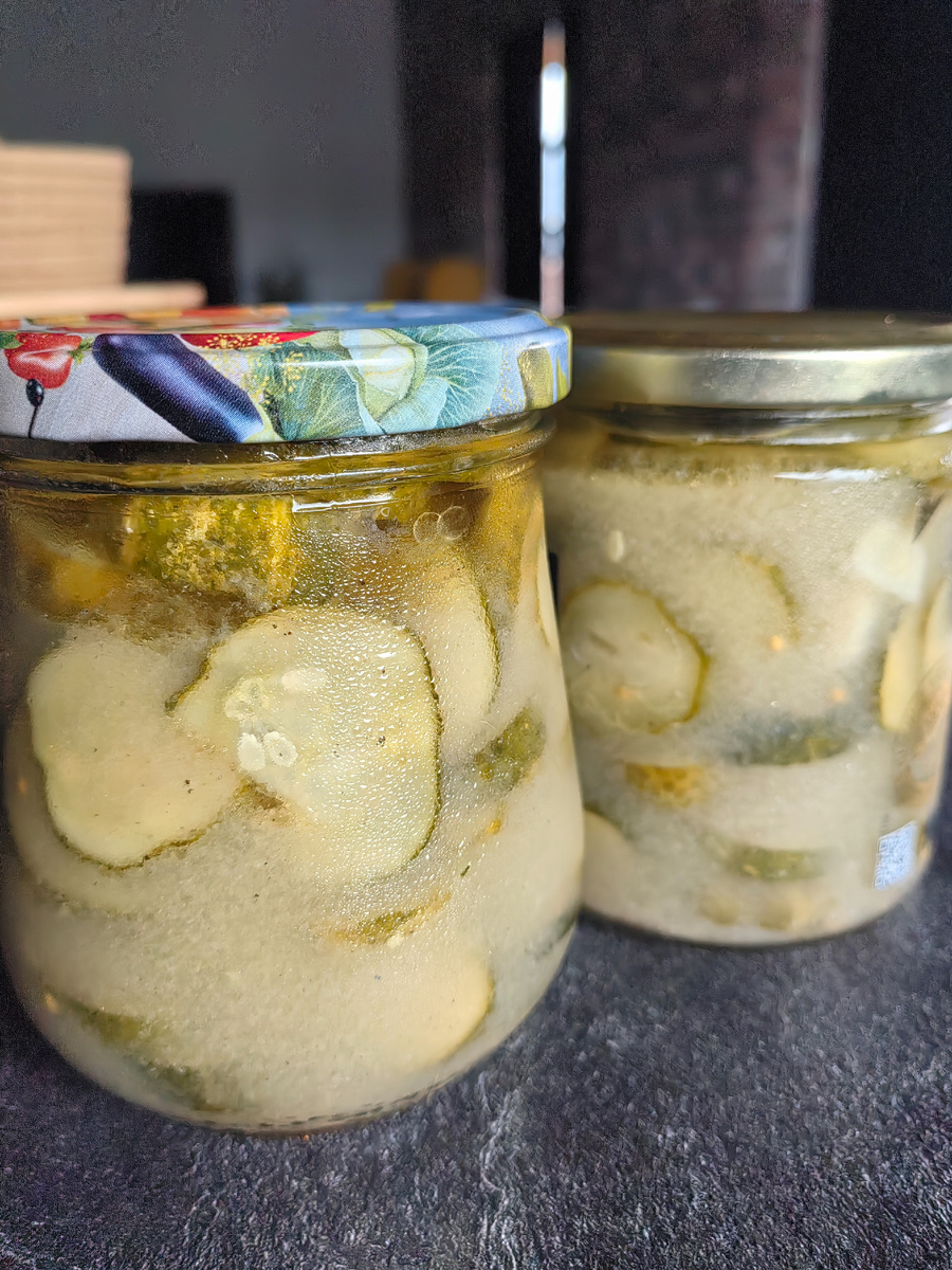 Еще один рецепт , которым хочу поделиться , Очень вкусные огурчики получаются . Хранить их нужно в холодильнике , так как их не стерилизуем , Берем 4 кг огурцов , нарезаем кружочками , достаточно тонкими 3-4 мм . Далее все засыпаем : - 2 столовые ложки сухой горчицы ; - 2 столовые ложки молотого черного перца ; - 1 стакан сахара ; - 1 стакан масла растительного; - 1 стакан уксуса 9% ; - 3 столовые ложки соли; - 1 головка чеснока ( кружочками); Все перемешиваем и нужно дать постоять 3 часа , периодически перемешивать . Перекладываем в банки и храним в холодильнике. Приятного аппетита .