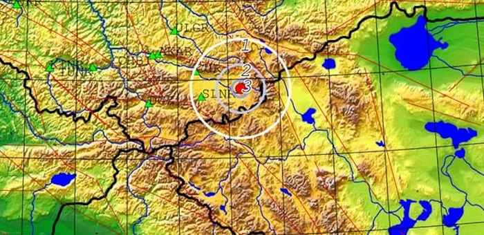 По данным Алтае-Саянского филиала Единой геофизической службы РАН, координаты эпицентра: 49.88 градуса северной широты, 89.24 градуса восточной долготы. Интенсивность сейсмособытия в эпицентре составила 3.4 балла по шкале MSK-64.