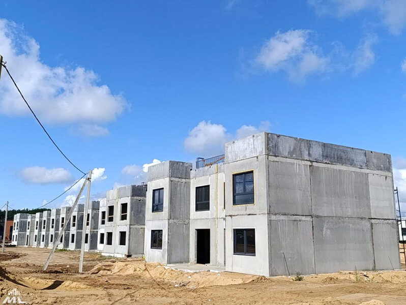 На данный момент коробки пяти коттеджей и таунхауса уже готовы. Строители монтируют окна и приступают к кровельным работам. На одном из зданий уже установлены крепления для будущего вентилируемого фасада.
