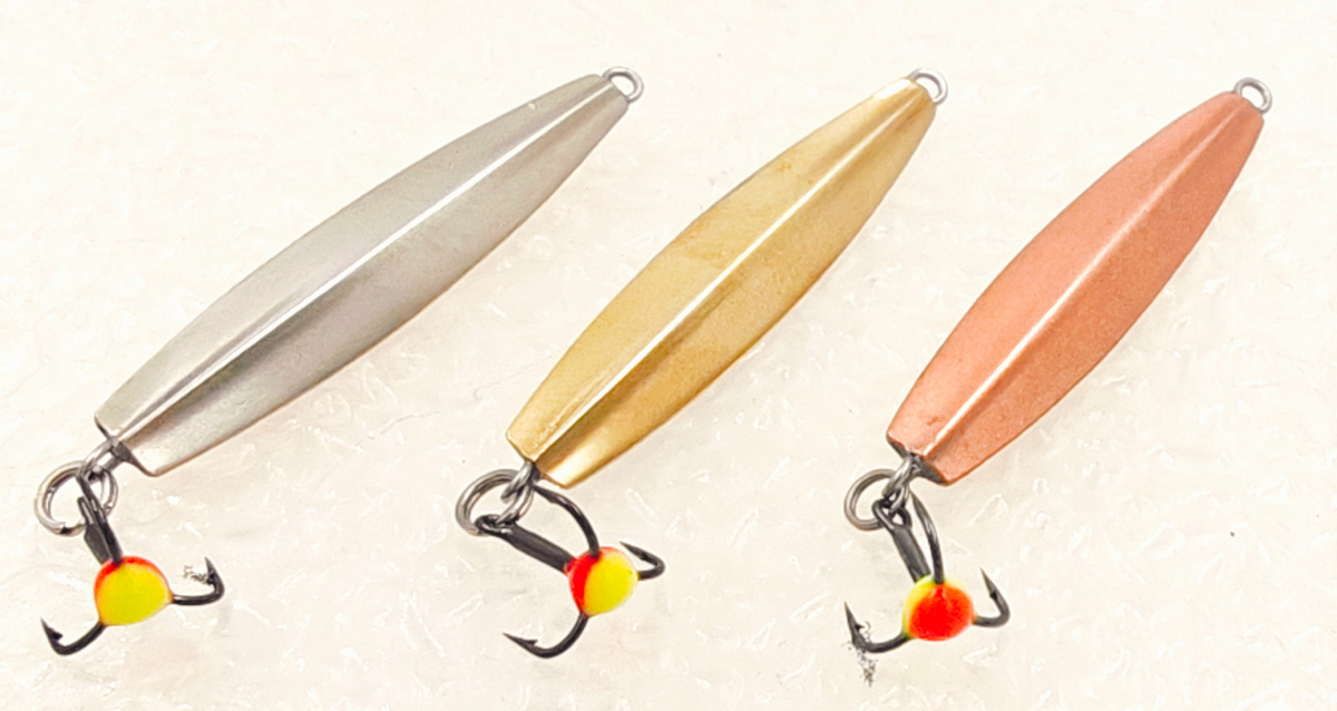 Блесна "Лаврушка" от компании Max Fishing - это двухкорончатый симметричный листик с долами. Блесна эта появилась как производная от "Липки", то есть имеет ту же форму коронки. Однако, за счет двух коронок и большей толщины, эта блесна ведет себя иначе. Выпускается блесна в двух размерах - 35мм и 45мм и имеет варианты с подвесным тройником или со впайкой. Модель 35мм имеет впаянный одинарник, а 45мм - впаянный двойник. Блесенки эти довольно компактные и тяжелые. Вес блесны 35мм - 3,8г, а вес 45мм составляет аж 6,5г. И это не смотря на наличие дол на обеих коронках. Хотя долы и небольшие. Блесна по сути своей универсальна для ловли разнокалиберного окуня на приличной глубине. То есть когда окунь больше предпочитает мелкие блесенки, но глубина ловли при этом большая. Данная блесна "Лаврушка" - быстрая симметричная сыпалка. При желании ее можно осыпать почти в столбе, но все же чаще мы делаем такой мах, при котором блесна немного сыпется, а дальше уходит в планирование с небольшим перевал