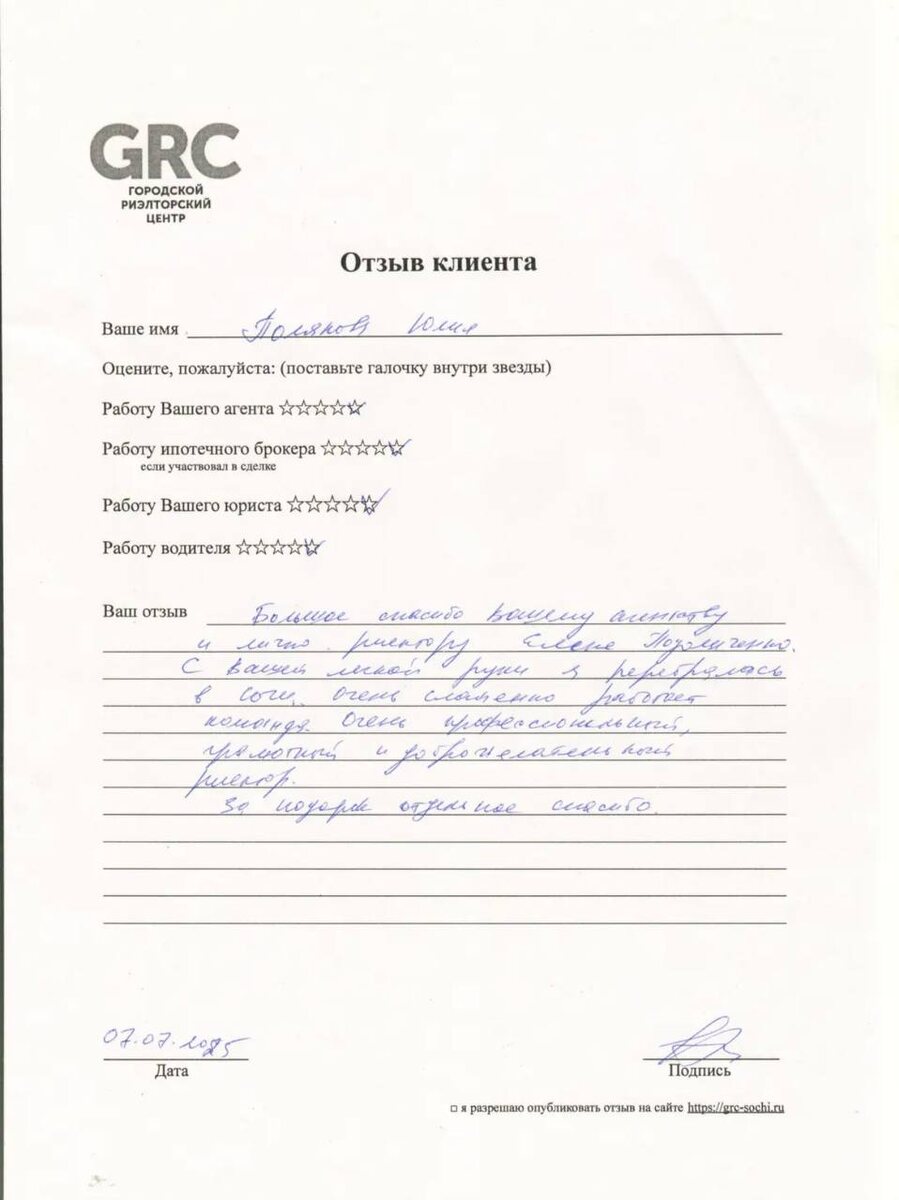 Благодарим за высокую оценку нашей деятельности 🤝 Отзывы наших клиентов, которые, безусловно, греют душу каждому из нас! ГОРОДСКОЙ РИЭЛТОРСКИЙ ЦЕНТР – 28 лет на рынке недвижимости Сочи! Отзывы 2Gis 💚 https://2gis.ru/sochi/firm/4222652931637360/tab/reviews Отзывы Яндекс ❤️ https://yandex.ru/maps/org/gorodskoy_rieltorskiy_tsentr/1139424591/reviews/ Больше отзывов здесь👇🏼 https://grc-sochi.ru/about/reviews/