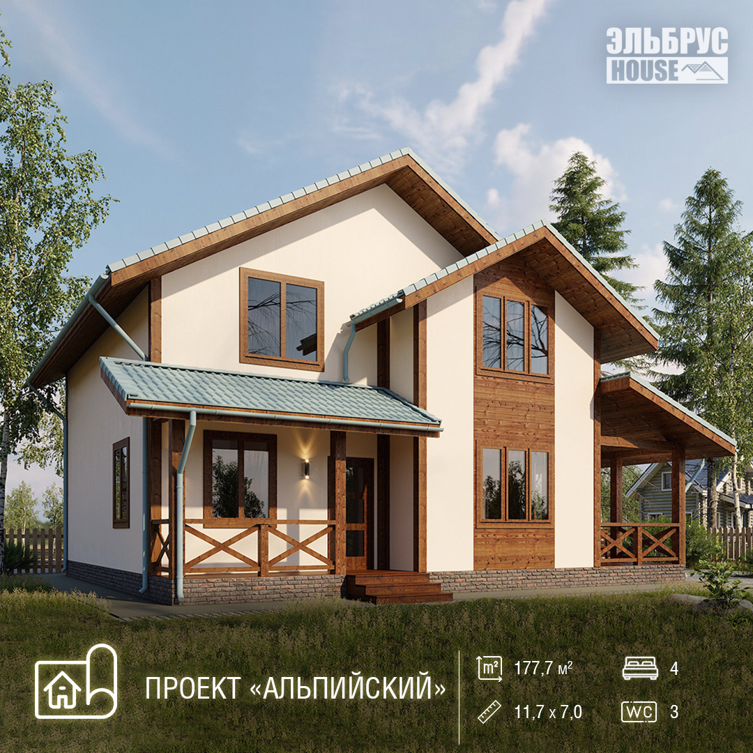 Один из ярких примеров - проект «Альпийский» площадью 178 м². Это просторный и уютный двухэтажный дом с сауной, идеально подходящий как для постоянного проживания, так и для отдыха за городом.