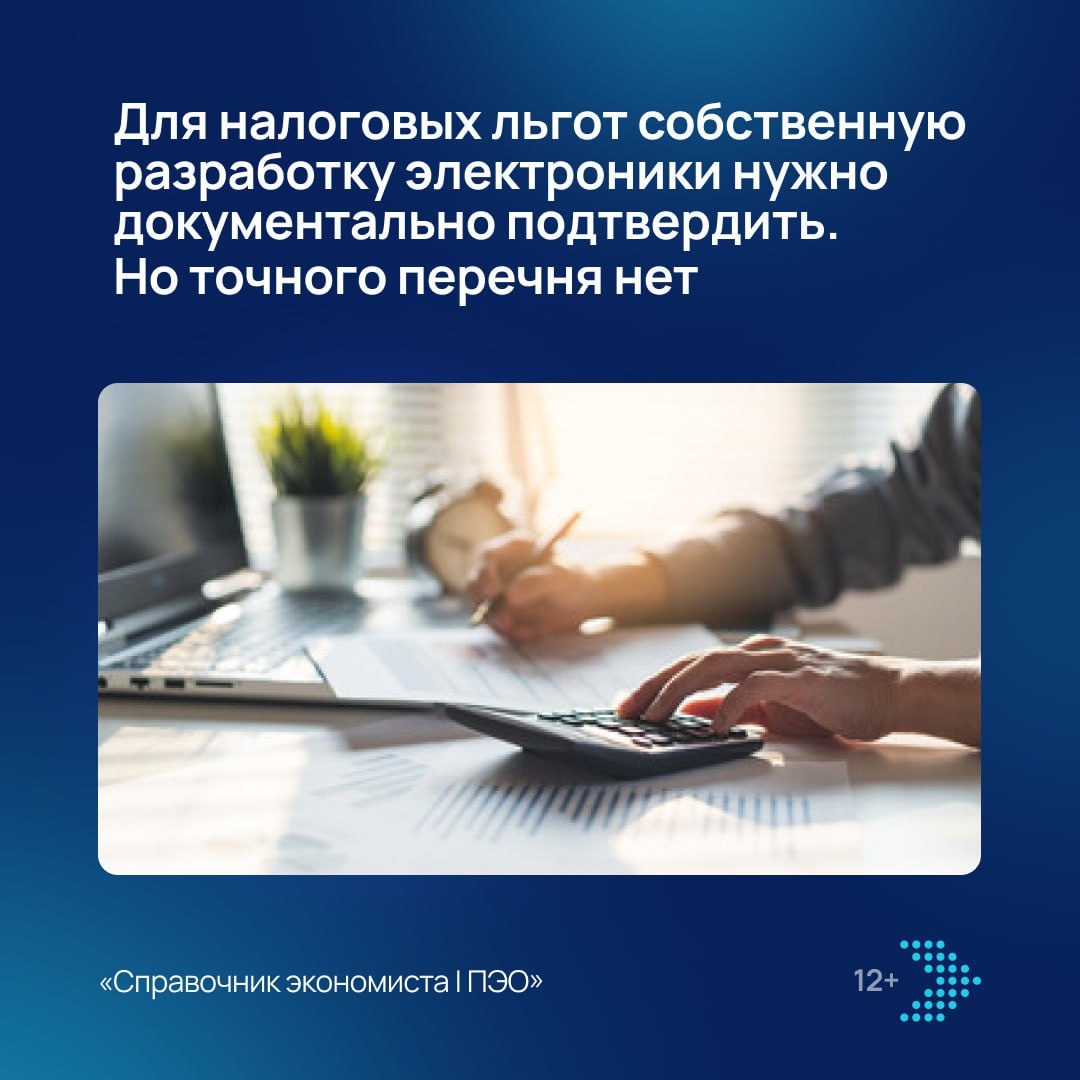 💡 У разработчиков электронной и радиоэлектронной продукции есть право на льготу по налогу на прибыль организаций. Для этого нужно производить продукцию по перечню Правительства или собственной разработки. Но факт собственной разработки нужно подтвердить. Подробнее