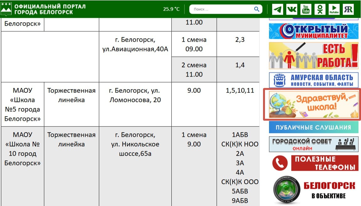 «Здравствуй, школа!»: специализированный раздел — на белогорск.рф