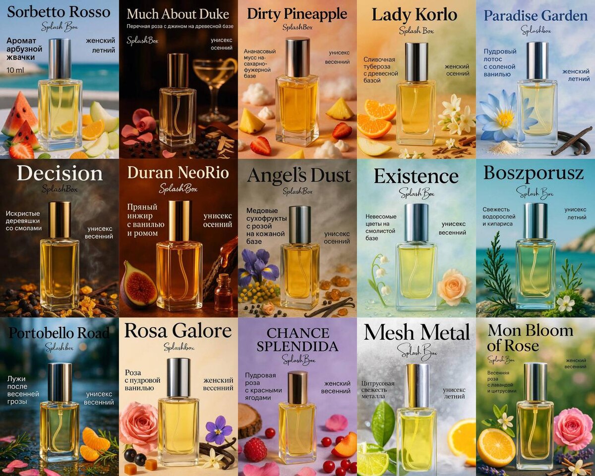 🤍🤍🤍🤍🤍🤍🤍🤍🤍 ✨✨✨✨✨✨✨ 🤍🤍🤍🤍🤍🤍🤍🤍🤍 ✨ Chance Eau Splendide - пудровая роза с красными ягодами 🤍Арт. 500757409 ✨ Angel's Dust - медовые сухофрукты с розой на кожаной базе 🤍Арт. 500757410 ✨ Boszporusz - свежесть водорослей и кипариса 🤍Арт. 499063955 ✨ Existence - невесомые цветы на смолистой базе 🤍Арт. 499060283 ✨ Duran NeoRio - пряный инжир с ванилью и ромом 🤍Арт. 499060282 ✨ Decision - искристые деревяшки со смолами 🤍Арт. 499060280 ✨ Mon Bloom of Rose - весенняя роза с лавандой и цитрусами 🤍Арт. 500757412 ✨ Portobello Road - лужи после весенней грозы 🤍Арт. 499060284 ✨ Dirty Pineapple - ананасовый мусс на сахарно-фужерной базе 🤍Арт. 499063953 ✨ Rosa Galore - роза с пудровой ванилью 🤍Арт. 500757407 ✨ Korlo Lady - сливочная тубероза с древесной базой 🤍Арт. 499063949 ✨ Mesh Metal - цитрусовая свежесть металла 🤍Арт. 499057399 ✨ La Belle Paradise Garden - пудровый лотос с соленой ванилью 🤍Арт. 499054924 ✨ Sorbetto Rosso - аромат арбузной жвачки 🤍Арт. 5