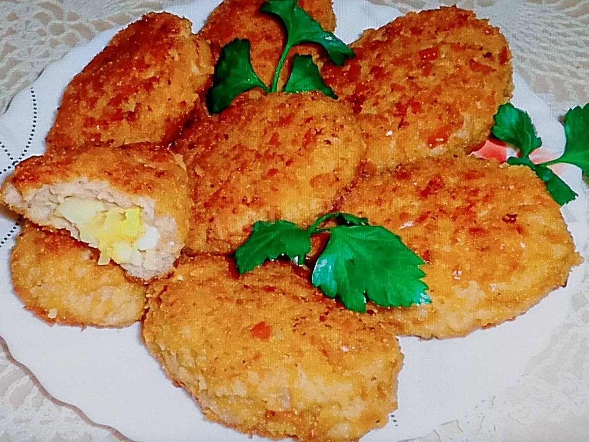 Мясные зразы с яйцом и луком, приготовленные на сковороде.