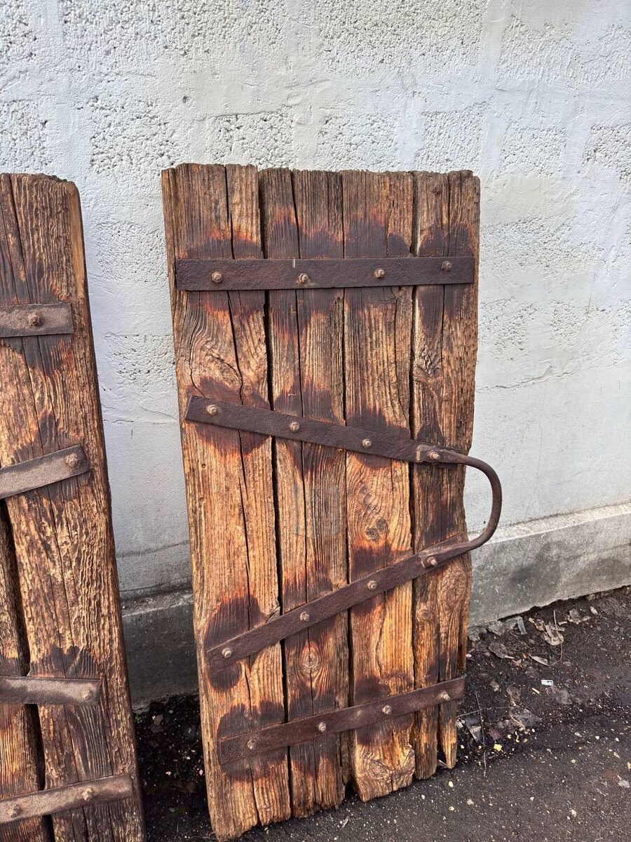 🔩 Кованые петли и ручки, следы времени, фактура древесины, обработанной водой и солнцем, делают эти створки уникальным объектом интерьера. Их можно использовать как декоративные панели, двери или арт-объект.