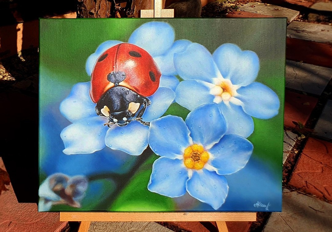Осень близко? 🍂 Я знаю, как вернуть тепло лета в ваш дом! Конечно же, тепло подарят работы моих учеников. Например, такая милая божья коровка 🐞 Это новая работа Анны Кононенковой, ученицы нашей академии! 🕸 Размер картины — 40х50 см, что делает её идеальным украшением для любого интерьера. Она добавит нотку уюта и тепла в ваш дом, напоминая о солнечных днях лета. Анна Кононенкова — талантливая художница, чьи работы всегда вызывают восхищение. Рисует по моей авторской технологии, в стиле гиперреализм, каждая картина — это маленькая история, наполненная смыслом. За период обучения Анна: ▫️Продала свои картины на общую сумму 72 000 рублей, устанавливая при этом вполне достойные цены — отличный результат для начинающей художницы! ▫️Уволилась с позиции главного бухгалтера, проработав на этой должности 22 года ▫️Научилась рисовать на заказ любые изображения ▫️Обзавелась настоящими друзьями, с общими идеями и интересами. ⭐️ Представьте, как вы сможете создавать такие же уникальные прои