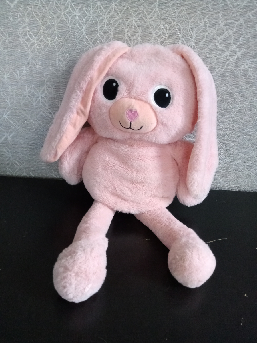 Подарили нам зайчика. Вот такого. Почему-то розового.
