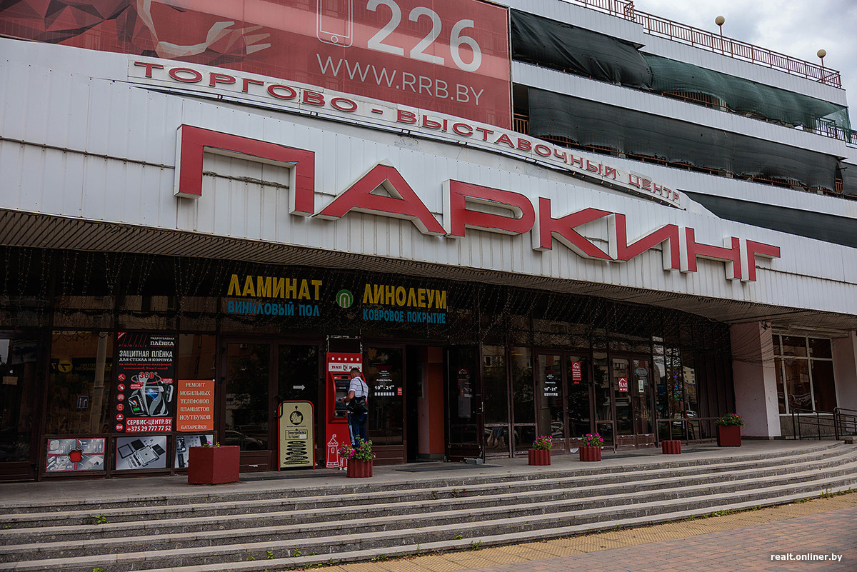 «Паркинг» открылся в районе Комаровского рынка еще в 2000 году и стал для города чем-то принципиально новым — это был первый в Беларуси торговый центр со встроенным паркингом (название недвусмысленно намекало). На верхних этажах можно было оставить машину, а на нижних — пройтись по магазинам.