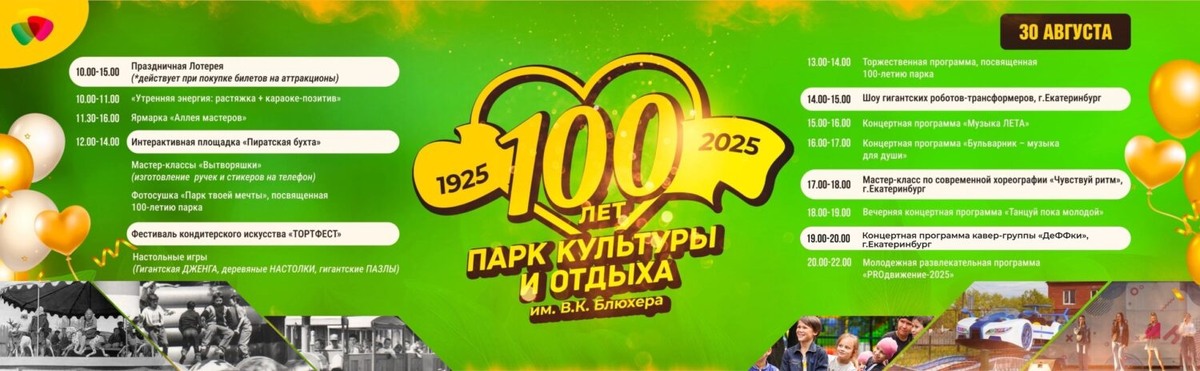 Уже на этой неделе — 30 августа городской парк культуры и отдыха им. В.К Блюхера отметит свой вековой юбилей. Он прошел большой путь от городского сада до современного пространства, где можно не только отдохнуть и полюбоваться цветами и скульптурами, но и прокатиться на аттракционах, принять участие в интересных программах для детей и взрослых. Программа праздничных мероприятий 30 августа: 10.00-15.00 — праздничная лотерея (действует при покупке билетов на аттракционы); 10.00-11.00 — «Утренняя энергия: растяжка + караоке-позитив»; 11.30-16.00 — ярмарка «Аллея мастеров»; 12.00-14.00 — работа интерактивной площадки «Пиратская бухта»; 12.00-14.00 — фестиваль кондитерского искусства «ТОРТФЕСТ». Вас ждет невероятное путешествие в мир изысканных десертов, потрясающих вкусов и кулинарного мастерства! В программе фестиваля: