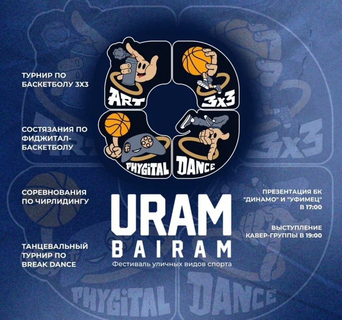 Фестиваль состоится 13 сентября в «Арт-Квадрате», сообщили в оргкомитете. В программе турниры по баскетболу 3х3, чирлидингу, фиджитал-соревнования и баттлы по брейк-дансу. В соревнованиях по баскетболу 3х3 примут участие юноши и девушки 12 — 15 лет, юниоры и юниорки 16 — 21 года, а также мужчины и женщины от 22 лет. Регистрация команд — на платформе FIBA 3x3 до 7 сентября. Для участия в турнирах по фиджитал-баскетболу, брейкингу и чирлидингу необходимо зарегистрироваться на сайте https://dynamoufa.ru/. В рамках фестиваля состоится презентация обновленного состава баскетбольного клуба «Динамо», а также команды БК «Уфимец». Гости смогут пообщаться со спортсменами во время автограф- и фотосессий, а также принять участие в активностях с баскетболистами. Фестиваль дополнят выступления диджеев Martinez и Air, а также кавер-групп «Summer breeze» и «Sunrise». Открытие фестиваля — в 17.00. Финальные игры по баскетболу начнутся в 17.30, выступления музыкальных коллективов — в 19.00 (6+). Вход и