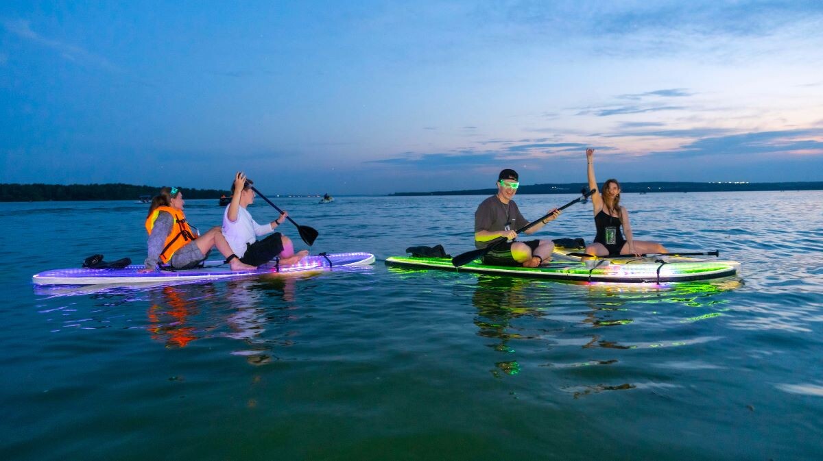 Прогулки по Шершневскому водохранилищу на прозрачных неоновых сапбордах запустила челябинка Алена Галиакберова. Девушка призналась, что ей пришлось поэкспериментировать и самостоятельно конструировать подсветку, потому что готового решения не было ни у одной компании, к которой она обращалась. Сначала удалось сделать внешнюю подсветку, затем – подсветку дна.