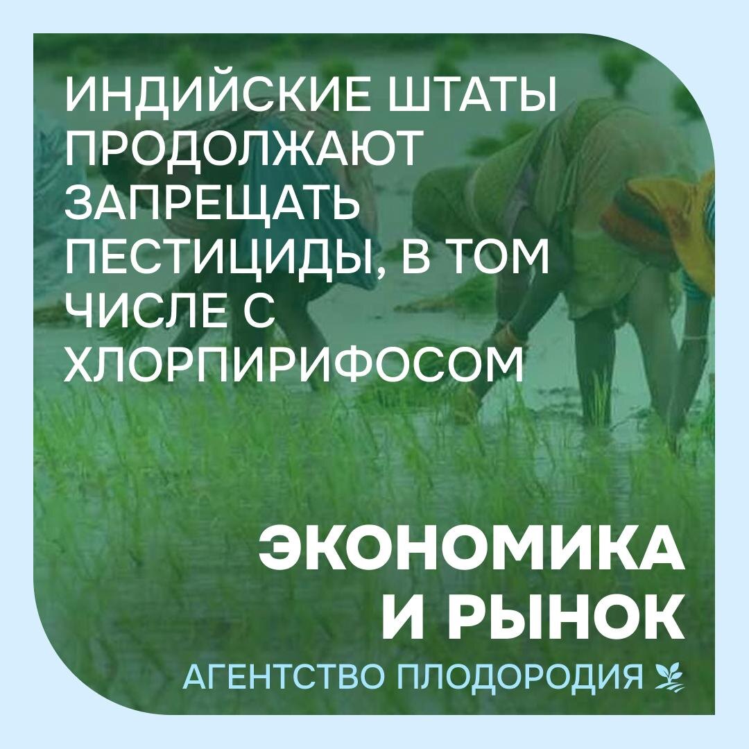 🌱 Индийские штаты продолжают запрещать использование пестицидов, с рядом опасных действующих веществ, в том числе хлорпирифоса, чтобы не