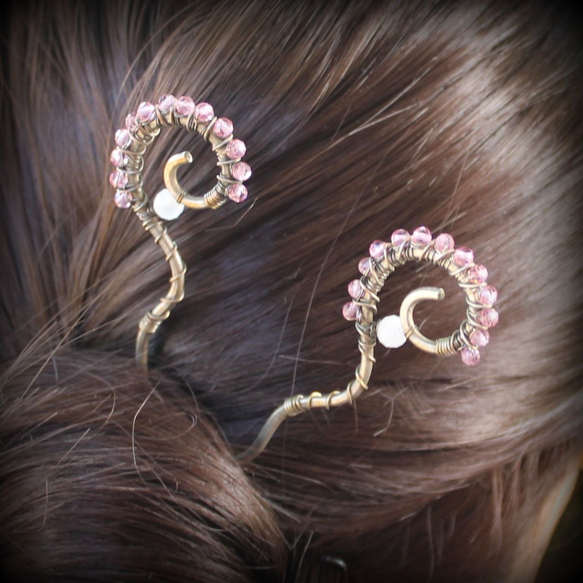 Шпильки Silver rose, парные, с лунным камнем. Плотные жесткие шпильки для закалывания волос. Изготовлены из нейзильбера, затем покрыты патиной и отшлифованы. Нейзильбер - не темнеющий ювелирный сплав. Длинные шпильки для волос с лунным камнем и цирконом. Шпильки очень удобные, не цепляют волосы, не царапают кожу, хорошо держат прическу. Длина 19 см, декоративная часть 5 см. При необходимости можно сделать короче. #медныесказки #ручнаяработа #шпилькидляволос #украшениедляволос #заколки #серебряныешпильки #парныешпильки #комплектшпилек #палочкидляволос